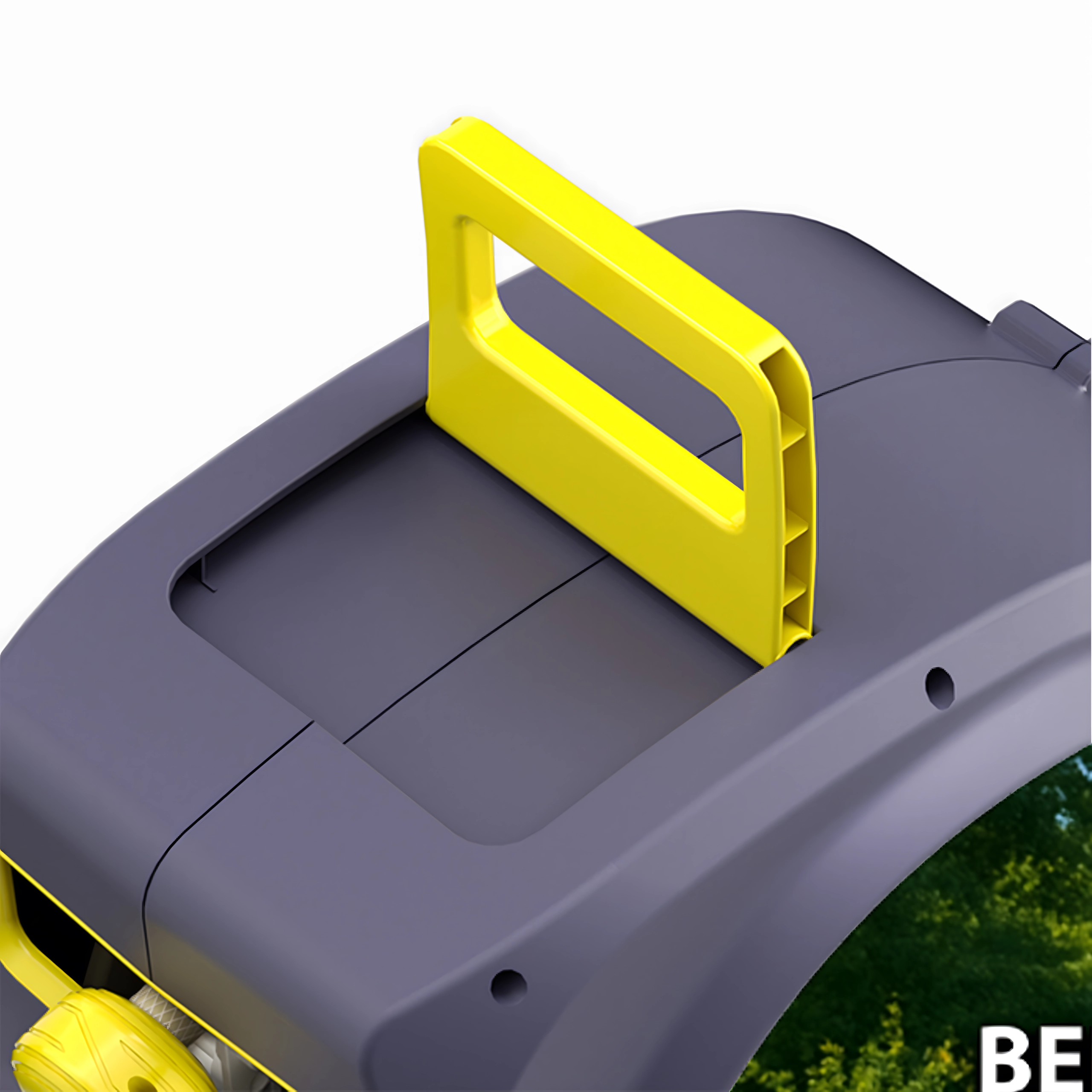 A felső, lehajtható fogantyú biztos fogást nyújt szállítás és szerelés közben. A masszív ház védi a mechanizmust és a tömlőt.
