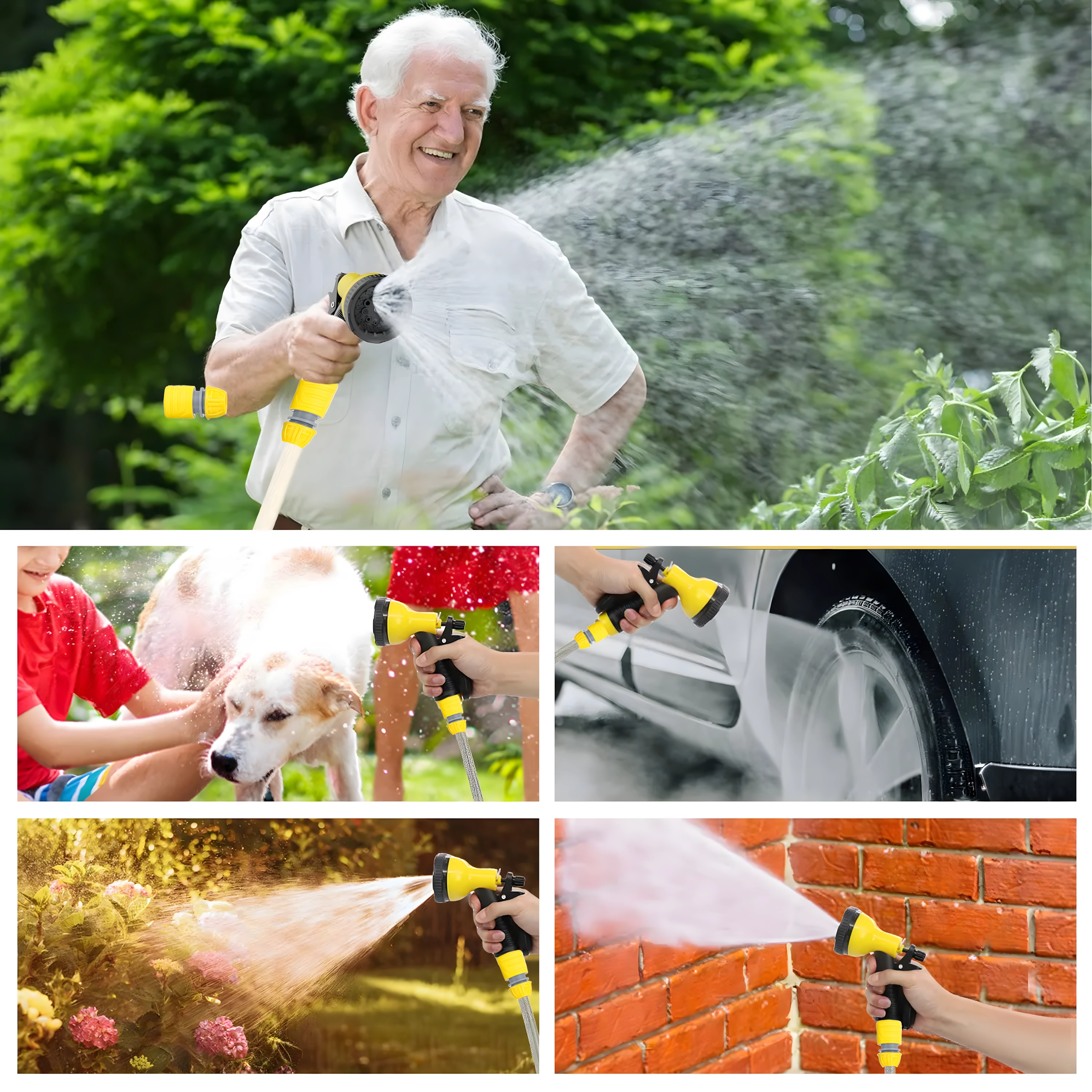 A mellékelt szórópisztoly különböző vízsugarakat kínál – a gyengéd öntözéstől a nagy erejű tisztítósugárig, kényelmes ravaszkezeléssel.