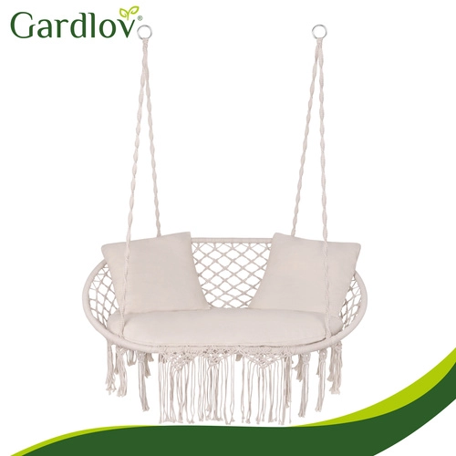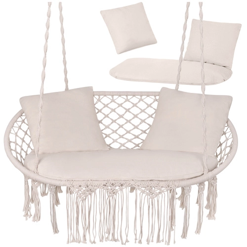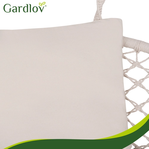 A nagy ülőpárna és a két puha díszpárna megtámasztja a hátat és a fejet, így a függőszékben való pihenés valóban teljes élményt nyújt.