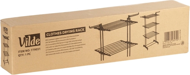 A négy forgó keréknek (ebből 2 fékkel) köszönhetően a szárítót könnyedén áthelyezheti a padló sérülésének kockázata nélkül. Teljes kihajtás mellett akár 24 m szárítófelület áll rendelkezésre, a praktikus alsó polc pedig cipők vagy kiegészítők szárítására szolgál. Összecsukva minimális helyet foglal, így kiváló választás kisebb háztartásokba is.