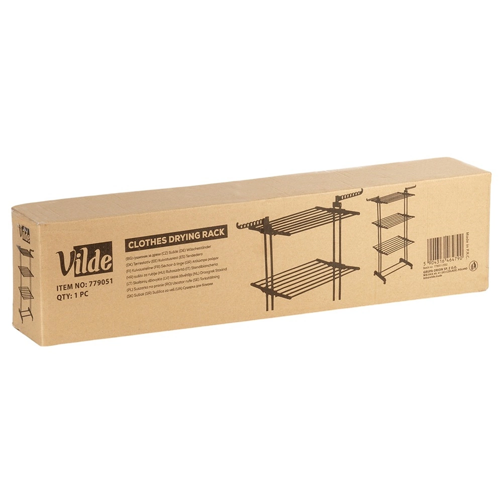 Maximalizálja a szárítási helyet a VILDE függőleges ruhaszárítóval. A három szint, a hat egymástól függetlenül lehajtható szárny és a két vállfataró kar lehetővé teszi a kis és nagy adag ruhák rugalmas szárítását. A porfestett, stabil fémkonstrukció kiemelkedő nedvességállóságot és hosszú élettartamot biztosít.