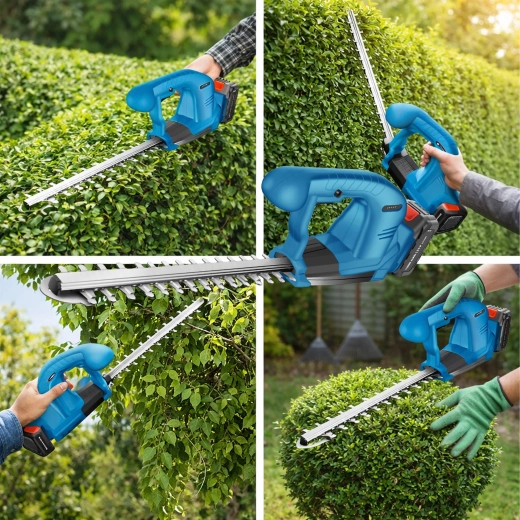 A szett két újratölthető akkumulátort és egy töltőt tartalmaz, így felváltva használhatja az akkukat, és tovább dolgozhat felesleges várakozás nélkül. A nyíró könnyű, jól kiegyensúlyozott, és alkalmas formázáshoz, valamint karbantartó vágásokhoz sövényeken és díszcserjéken.