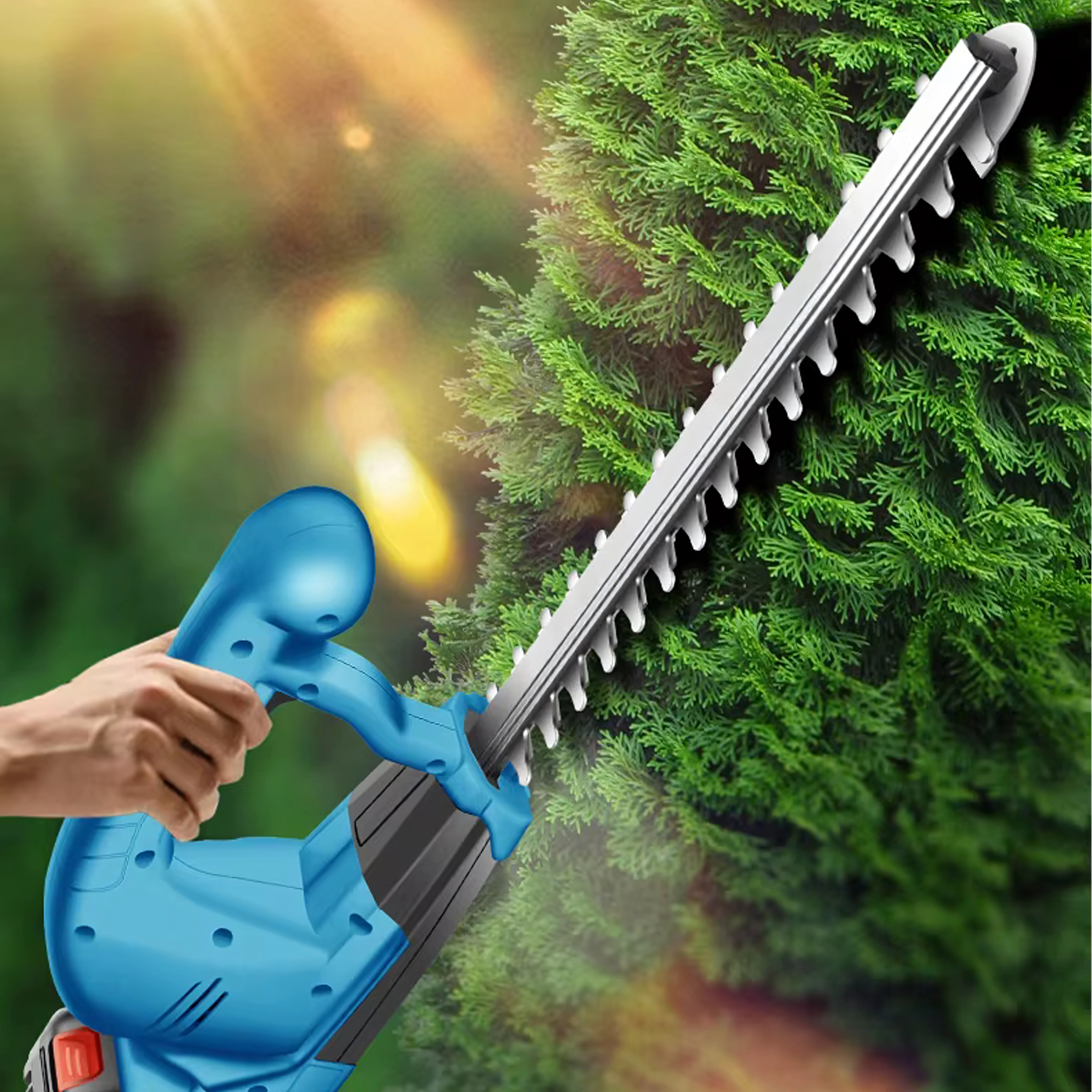 A hosszú, kétoldalas fém penge csökkenti a vibrációt és precíz vágást biztosít az ágak és levelek esetében, ideális a sövények formázásához.
