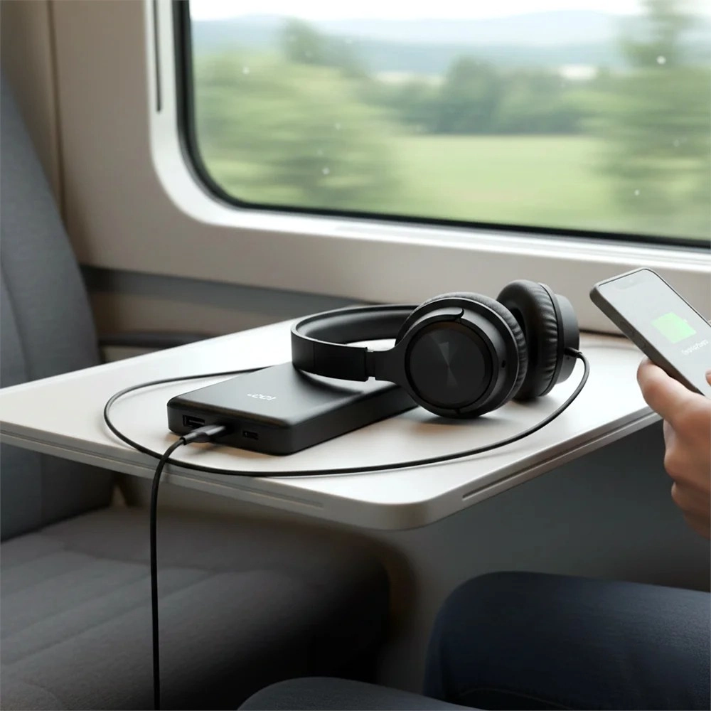 Két USB‑C (bemenet/kimenet) és egy USB‑A lehetővé teszi akár három eszköz egyidejű töltését. Tökéletes telefonhoz, e‑könyv‑olvasóhoz és hordozható konzolhoz.