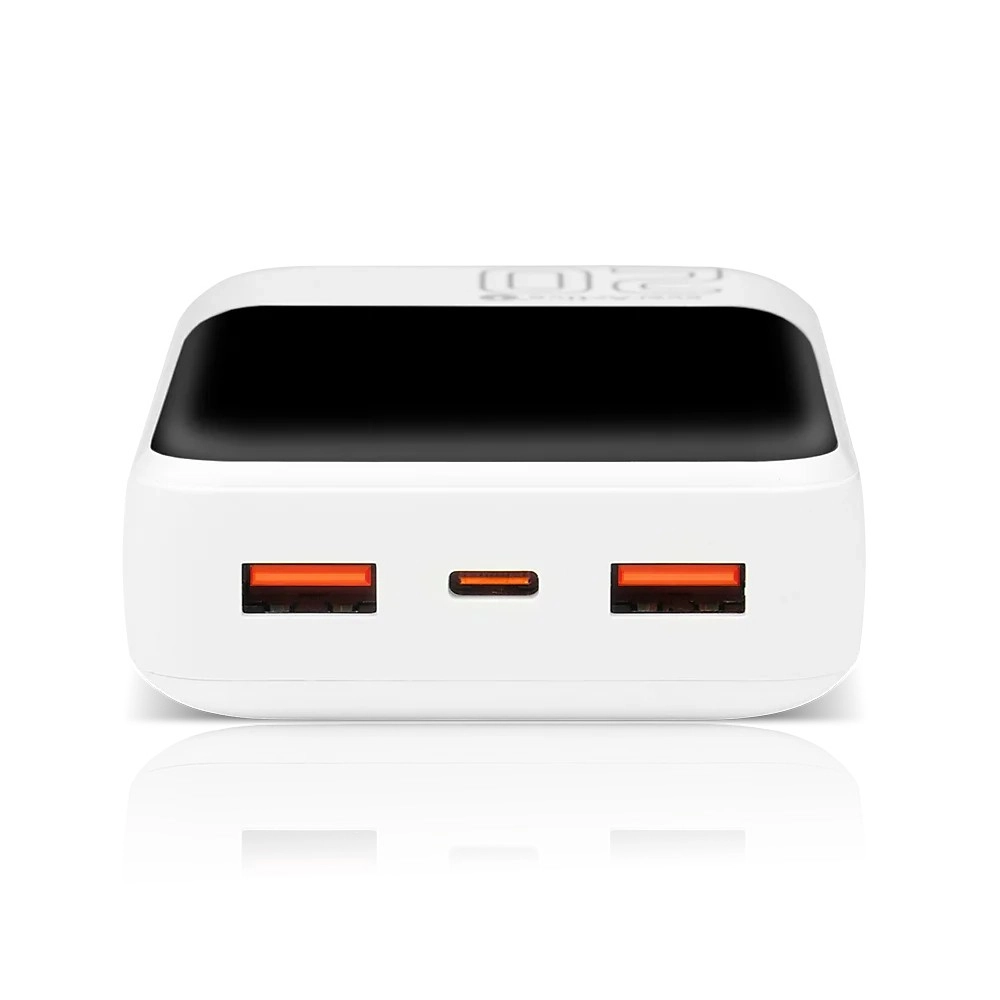 A USB-C (bemenet/kimenet) és a 2× USB-A portoknak köszönhetően akár három eszköz egyidejű töltésére képes. A PD3.0, PPS, QC4+, QC3.0, QC2.0, Apple 2.4A, DCP, Huawei FCP/SCP, VOOC, MTK-PE+2.0 protokollokkal való széleskörű kompatibilitás garantálja az optimális teljesítményt különböző márkájú eszközökhöz. A pass‑through funkció lehetővé teszi a csatlakoztatott eszközök tápellátását a powerbank egyidejű töltése mellett.