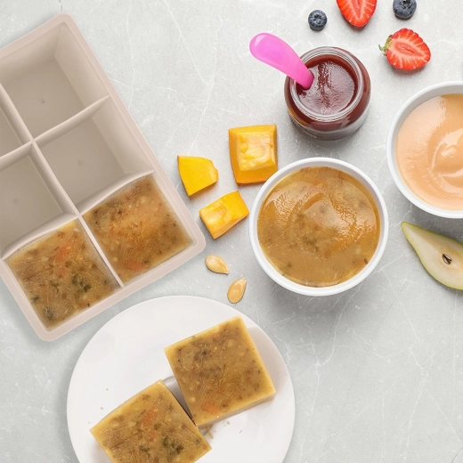 A rugalmas szilikonfalaknak köszönhetően a kockák törés nélkül, erőfeszítésmentesen vehetők ki. Az átlátszó fedél megkönnyíti a fagyasztóba helyezést, megakadályozza a kifolyást, és lehetővé teszi a stószolást szagátvitel nélkül. A formát használhatja fagyasztott fűszernövényekhez, alaplevekhez, gyümölcspüréhez vagy gyümölcsös-fűszeres infúziós kockákhoz is látványos tálaláshoz.