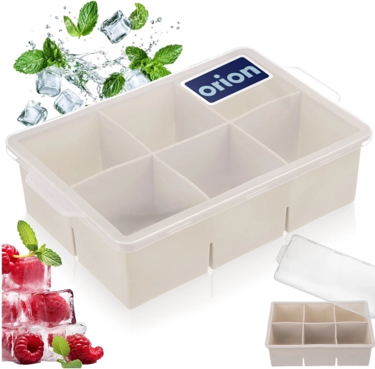 Fedezze fel a tökéletes formát a tökéletesen lehűtött italok kedvelőinek. Ez a bézs színű szilikon forma fedővel hat darab XXL jégkockát készít 5 × 5 × 5 cm méretben, amelyek lassabban olvadnak, és hosszan tartó hűtést biztosítanak vízhez, limonádékhoz, koktélokhoz és prémium párlatokhoz.