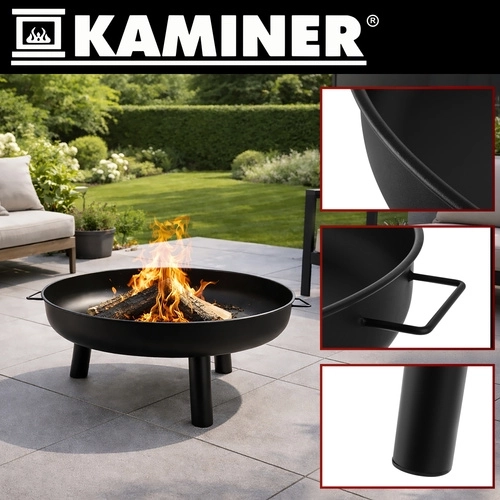 A 80 cm átmérőjű KAMINER nagyméretű tűzrakó ideális választás esti együttlétekhez családdal és barátokkal. A széles, sekély, tartós fémtál biztonságos és kontrollált égést biztosít tűzifával vagy faszénnel, míg a háromláb magas fokú stabilitást és megfelelő távolságot nyújt a padlózattól.