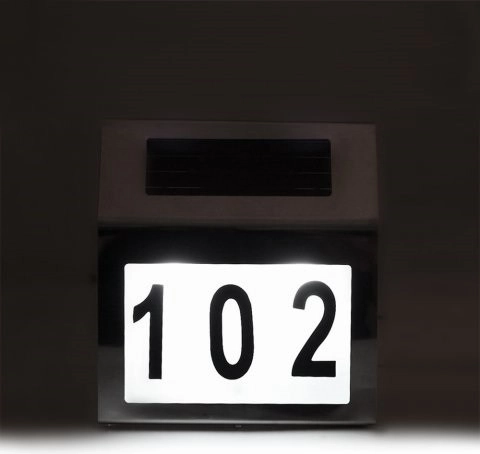 Stílusos, napelemes kültéri lámpa a házszám jól látható megjelenítéséhez. Az integrált panel tölti a beépített akkumulátort, az energiatakarékos LED pedig hosszú üzemidőt és kiváló olvashatóságot biztosít sötétben. Modern dizájn és vezeték nélküli telepítés hálózati áram bevezetése nélkül.