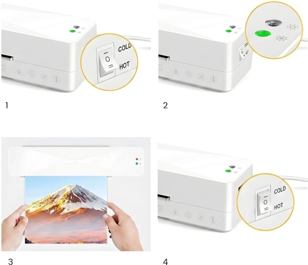 Biztonságosan laminálhat mindennapi dokumentumokat és érzékeny anyagokat is. A meleg mód tartós kötést ad, a hideg mód fényképekhez és hőre érzékeny papírokhoz ideális.