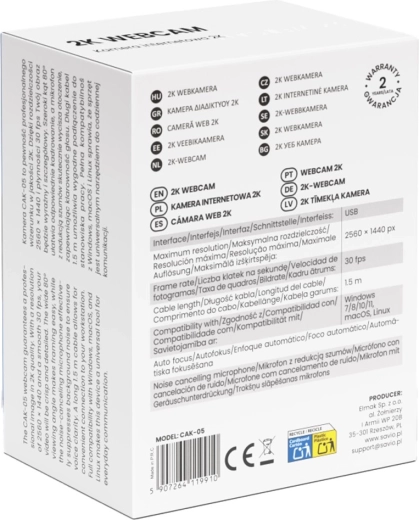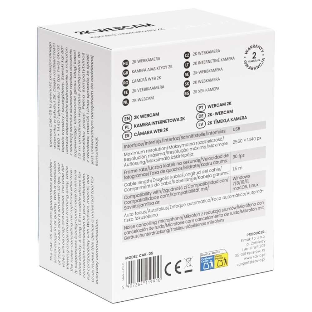 A CAK‑105 webkamera ideális távmunkához, online oktatáshoz és videóhívásokhoz a családdal. A 2K felbontású, éles kép kiemeli a részleteket, és professzionális hatást kelt még igényes konferenciaeszközökben is.