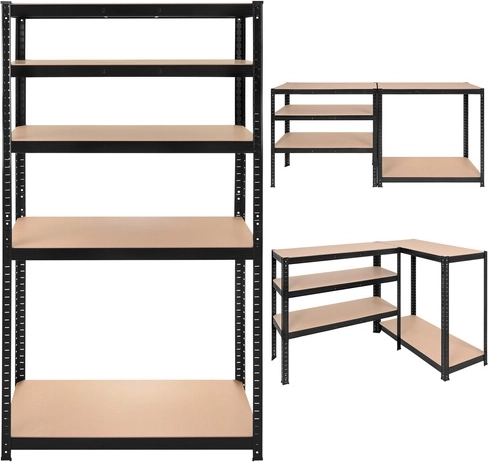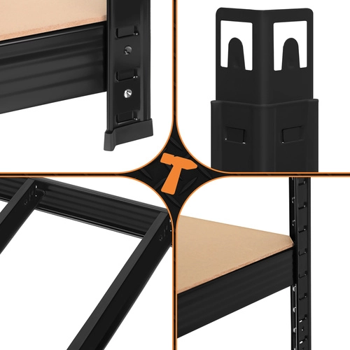 Az összeszerelés gyors és csavarmentes – az elemek egymásba pattinthatók, elegendő egy gumikalapács. A polcok magassága 30 mm-enként állítható, így könnyedén elhelyezhetsz dobozokat, szerszámokat, gumiabroncsokat és készleteket. A 3 az 1-ben rendszer lehetővé teszi magas polc összeállítását, két alacsonyabb szegmensre osztását vagy sarokmegoldás kialakítását a helykihasználás maximalizálására.