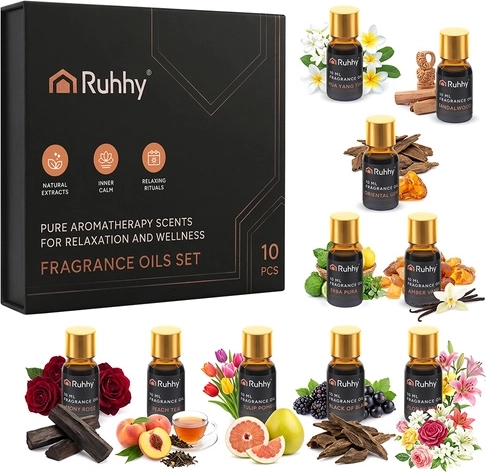 A készlet 10 különböző aromát kínál – a virágostól és frissestől a meleg és orientális tónusokig – így könnyedén megteremtheti a hangulathoz illő atmoszférát.