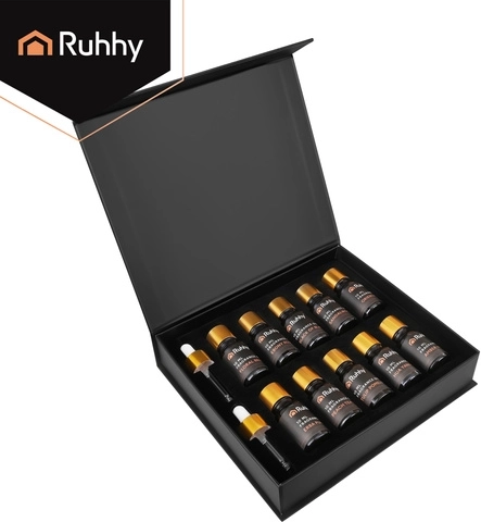 Az olajesszenciák alkalmasak ultrahangos diffúzorokhoz, aromalámpákhoz, illatkőhöz és potpourrihoz. Minden illat sötét színű üvegcsében kapott helyet az aroma jobb védelme érdekében. A készlet része 2 cseppentő a tiszta és pontos adagoláshoz, pazarlás nélkül, valamint egy elegáns, mágneszáras ajándékdoboz.