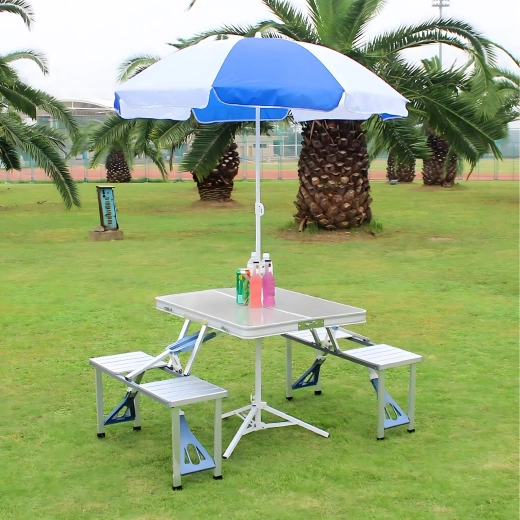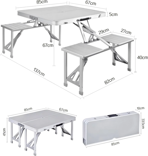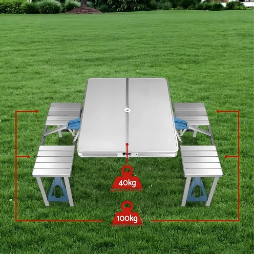 Összecsukható alumínium kemping piknikasztal ülőkékkel