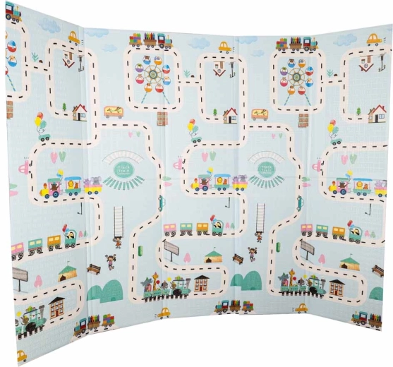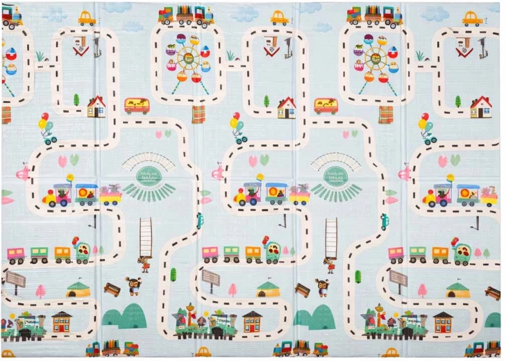 Ez a minőségi habszivacs szőnyeg a biztonságos és kényelmes mindennapi játékhoz készült. A rugalmas, puha réteg hatékonyan tompítja az eséseket, ugrásokat és bátortalan első mozdulatokat, míg a csúszásgátló, finoman texturált felület stabilitást ad a padlón. A kétoldalas minta egyik oldalán utcák és kisváros motívum, a másikon finom, pasztell tájképi minta serkenti a képzeletet, miközben nem zavarja a modern enteriőrt.
