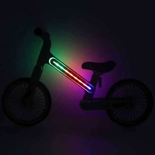 Stílusos futóbicikli gyerekeknek LED-es, megvilágított vázzal és akár 20 fényüzemmóddal a jobb láthatóságért és szórakozásért. Könnyű nejlon szerkezet, karbantartásmentes 12" EVA kerekek és állítható nyereg a kényelmes és biztonságos utazáshoz. Ideális első kerékpár a egyensúly és koordináció természetes gyakorlásához pótkerekek nélkül.