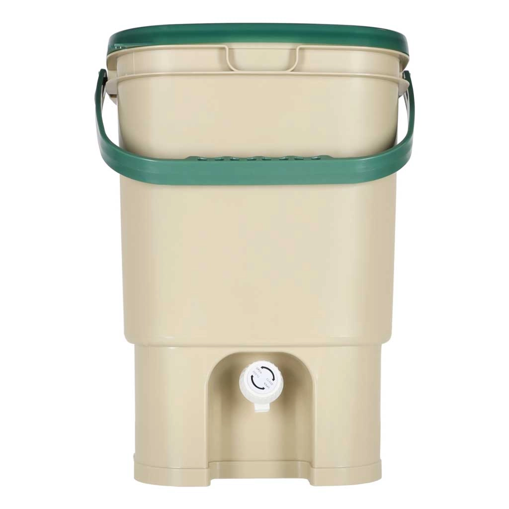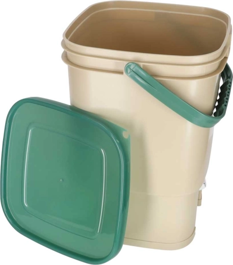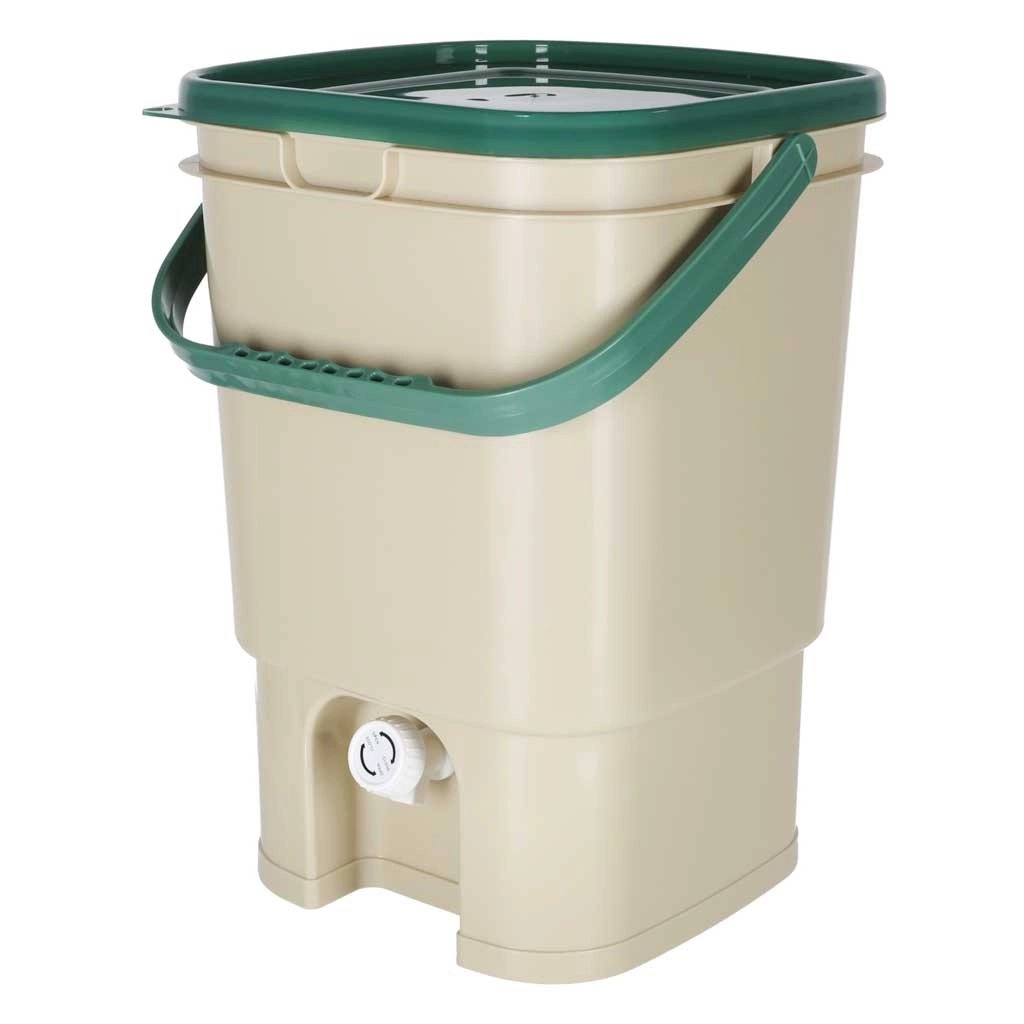 A praktikus, lakásba és házba egyaránt ajánlott komposztáló higiénikus módon segít egy helyen gyűjteni az organikus maradékokat (héjak, kávézacc, teafilterek, tojáshéj stb.). A masszív fedél mérsékli a szagok terjedését, a belső perforált betét elválasztja a szilárd anyagot a folyadéktól, az alsó csap pedig megkönnyíti a tápanyagokban gazdag kivonat leeresztését.