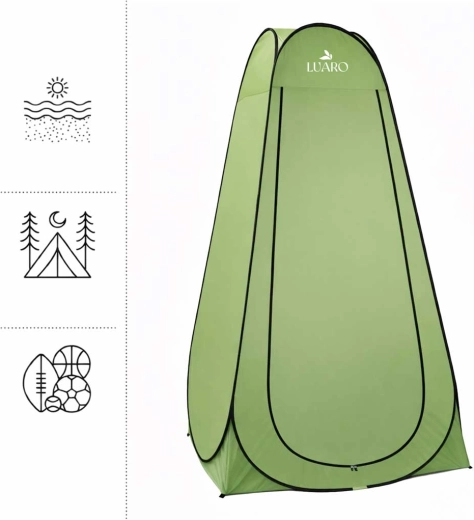 A praktikus, mobil LUARO pop-up sátor azonnali privát kabint biztosít átöltözéshez, zuhanyzáshoz vagy WC-hez a strandon, kempingben és fesztiválon. A önfelálló szerkezetnek köszönhetően néhány másodperc alatt felállítható, könnyű, szélálló, és a mellékelt tokban egyszerűen hordozható.