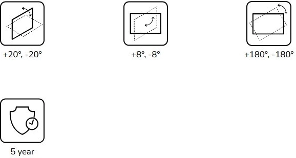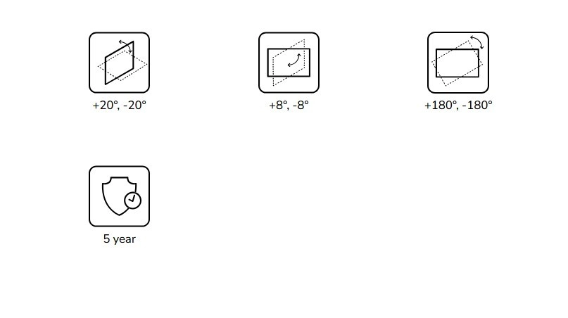 A könnyű telepítés és a mindennapi használat érdekében a tartó teljes beállítási készletet kínál: +20°/−20° dőlésszög a kép magasságának korrekciójához, teljes 360°-os forgatás az ideális irányításhoz, valamint finom vízszintezés +8°/−8° tartományban, ami egyenes és tökéletesen középre állított képet garantál.