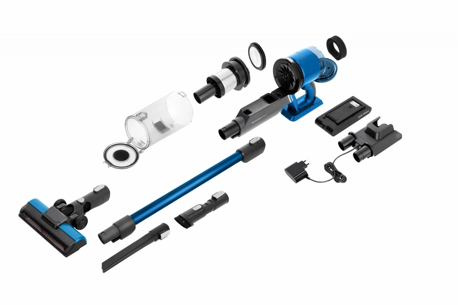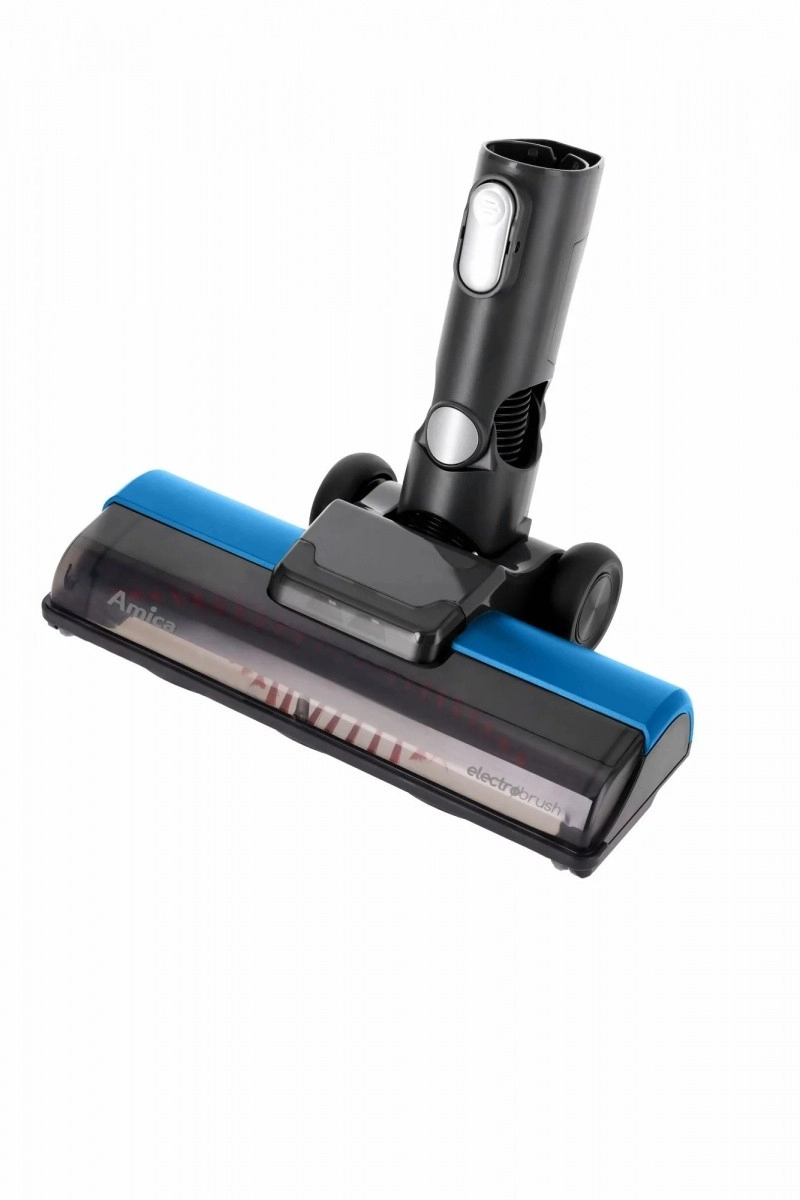A motoros elektromos kefefej LED világítással jobban láthatóvá teszi a port a bútorok alatt, és kiegészítő meghajtása segít a szennyeződések kifésülésében a hosszabb szálú szőnyegekből. Az elektronikus teljesítményszabályzás és a több üzemmód (auto/high/middle/low) megkönnyíti a szívóerő felülethez igazítását, míg a lágy indítás kíméli az akkumulátort és a motort.