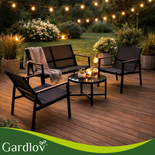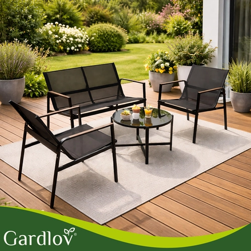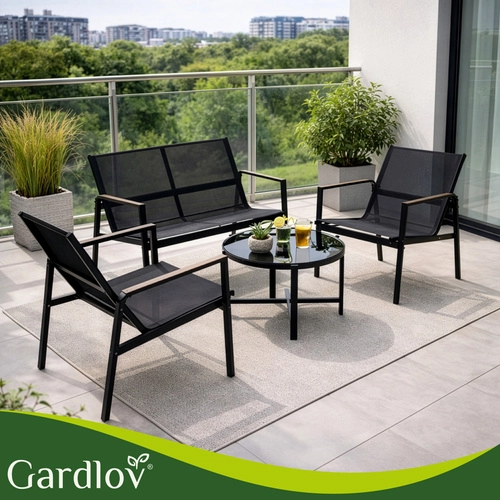 Alakítson ki pillanatok alatt meghitt zónát az erkélyen vagy a teraszon. A GARDLOV 4 az 1-ben szett egy kanapét, két fotelt és egy dohányzóasztalt tartalmaz edzett üveg asztallappal. A horganyzott acél váz és a légáteresztő teslin szövet révén az összeállítás stabil, időjárásálló és könnyen karbantartható – elég nedves ronggyal áttörölni.