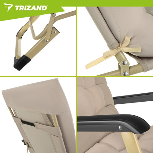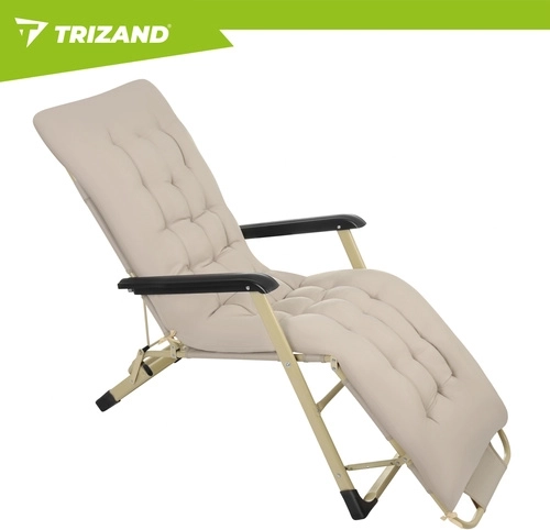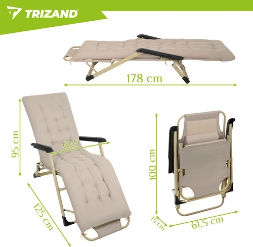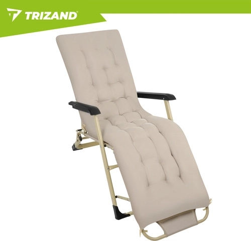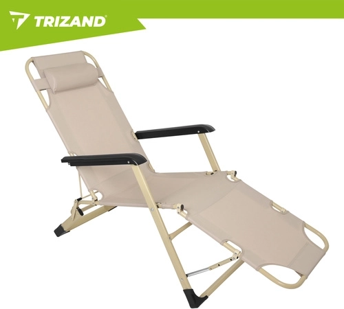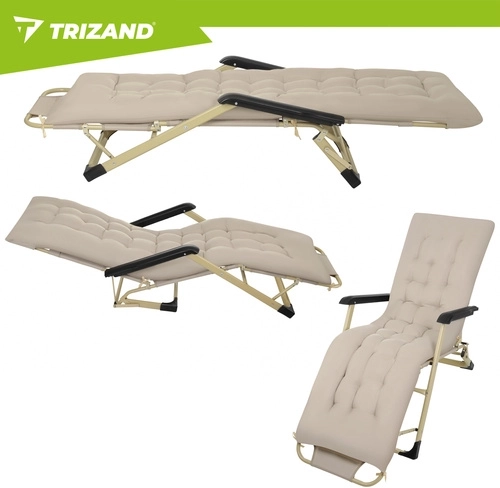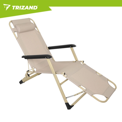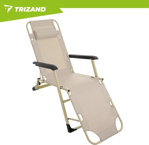 Élvezze a kényelmet a kertben, teraszon vagy a strandon a TRIZAND 3 az 1-ben összecsukható nyugággyal. 3 pozíciót kínál (ülő, félig fekvő, fekvő), vastag, teljes hosszúságú párnát és levehető fejpárnát. A tartós Oxford 600D szövet könnyen tisztítható, a csúszásgátló lábak stabilitást biztosítanak, az összecsukható szerkezet pedig megkönnyíti a szállítást és a tárolást.