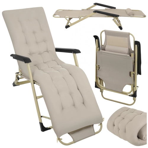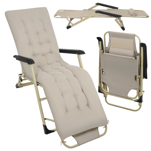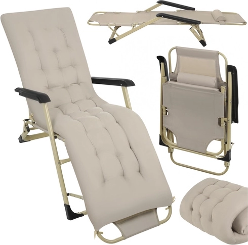 A 3 az 1-ben nyugágy egyesíti a fotel, a nyugágy és a pihenőszék funkcióját, így mindig beállíthatja az ideális testhelyzetet olvasáshoz, napozáshoz vagy délutáni sziesztához. A háttámla és a lábtartó háromfokozatú állítása tehermentesíti a hátat és a térdet, míg a vastag párna 1,2 kg töltettel puha támaszt nyújt a teljes testhosszban.