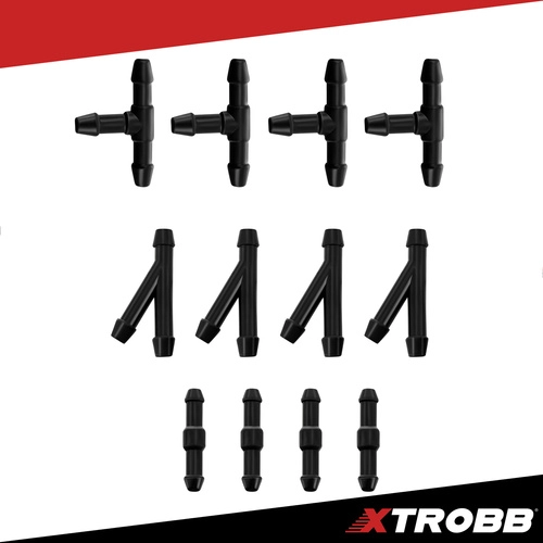 Az egyenes csatlakozók és T/Y elosztók készlete gyors, erős és tartós csatlakoztatást, illetve körök szétosztását biztosítja több fúvókához.