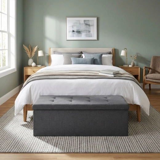 A pad kényelmes, kárpitozott ülőfelületet és tágas belső rekeszt kínál, amelyben textíliák, játékok és kiegészítők is elférnek. Ideális az előszobába, hálószobába és a nappaliba.