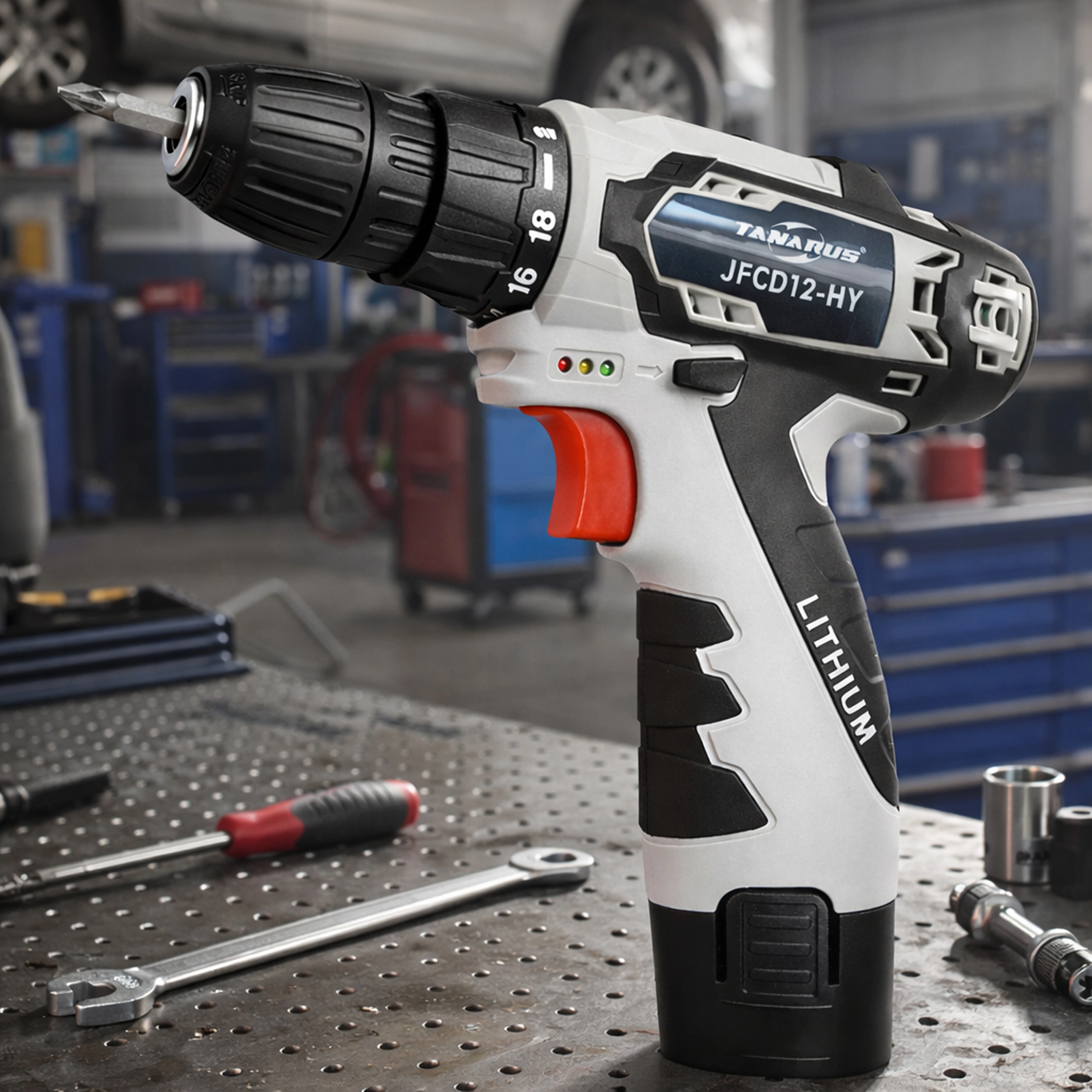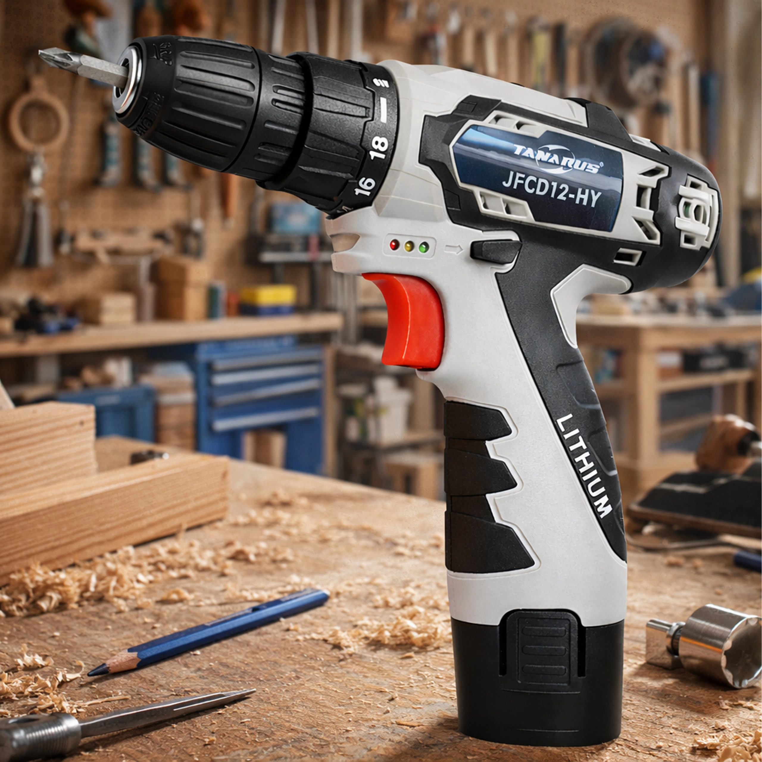 Ez a könnyű és nagy teljesítményű 12 V-os akkumulátoros csavarhúzó ideális bútorszereléshez, otthoni javításokhoz és kisebb barkácsprojektekhez. A két 1,5 Ah-s akkumulátornak köszönhetően megszakítás nélkül dolgozhat, miközben az egyik töltődik. Az integrált LED fény javítja a láthatóságot a sötét sarkokban, a pontos nyomatékbeállítás pedig védi a csavarokat és az anyagot.