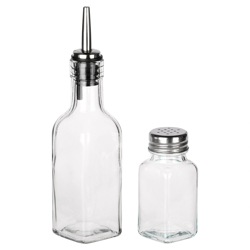 A rozsdamentes kiöntőkkel ellátott palackok egyenletes, szabályozott olaj- vagy ecetáramlást biztosítanak – tiszta tálalás és egyenletes ízesítés minden fogásnál.