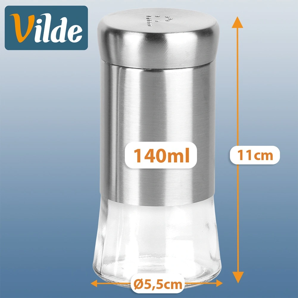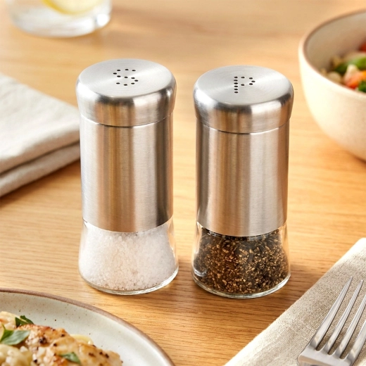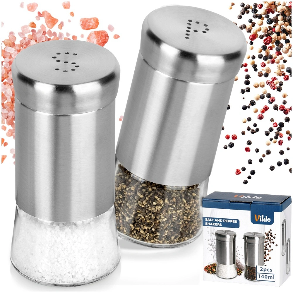 A só- és borstartó készlet minőségi, átlátszó üvegből készült, rozsdamentes acél felső résszel és elegáns, ezüstszínű tetővel. A S és P betűket formázó praktikus perforáció kényelmes és egyenletes szórást tesz lehetővé, csökkentve a túlsózás vagy a túlzott fűszerezés kockázatát.