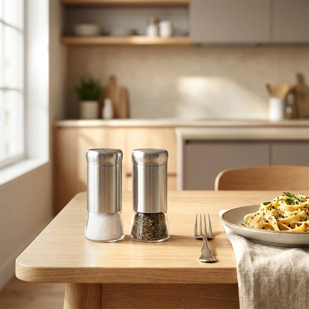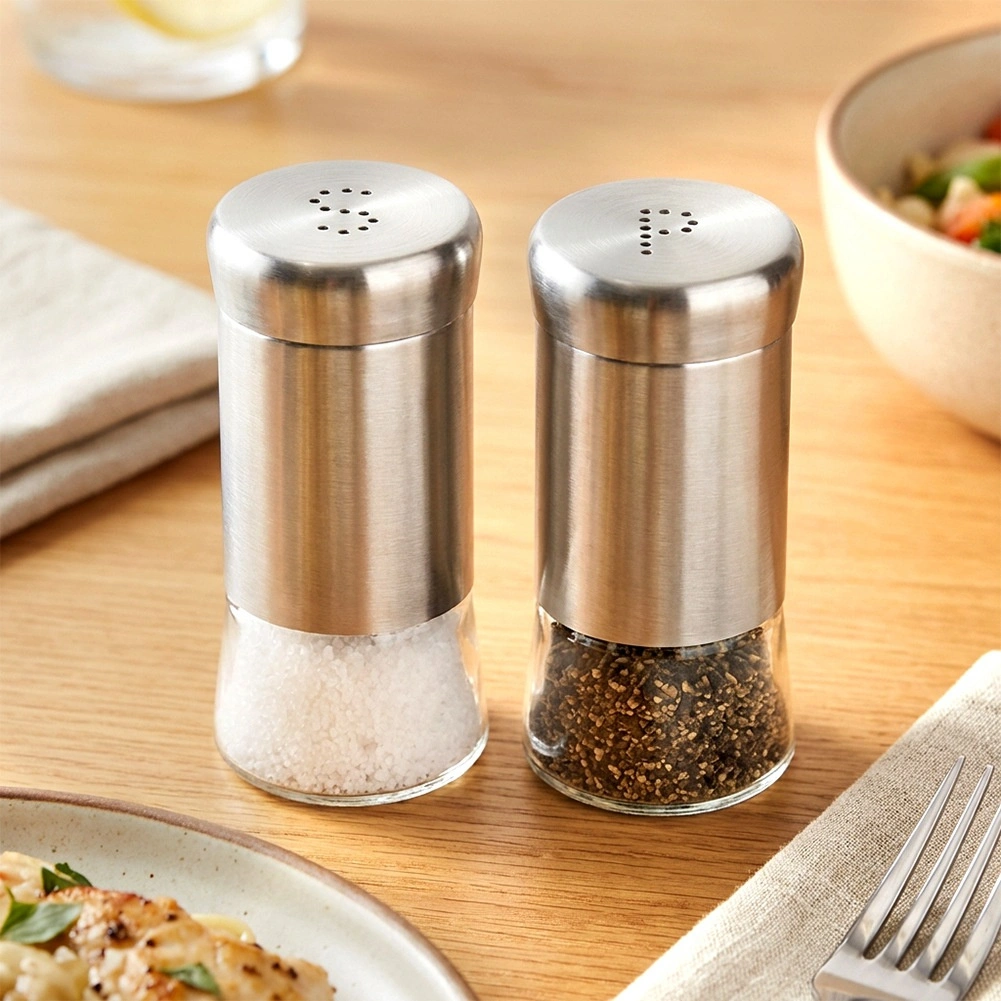 Az átlátszó üveg mutatja a megmaradt tartalmat, így időben pótolhatja a sót vagy a borsot, és a fűszerek mindig kéznél lesznek.