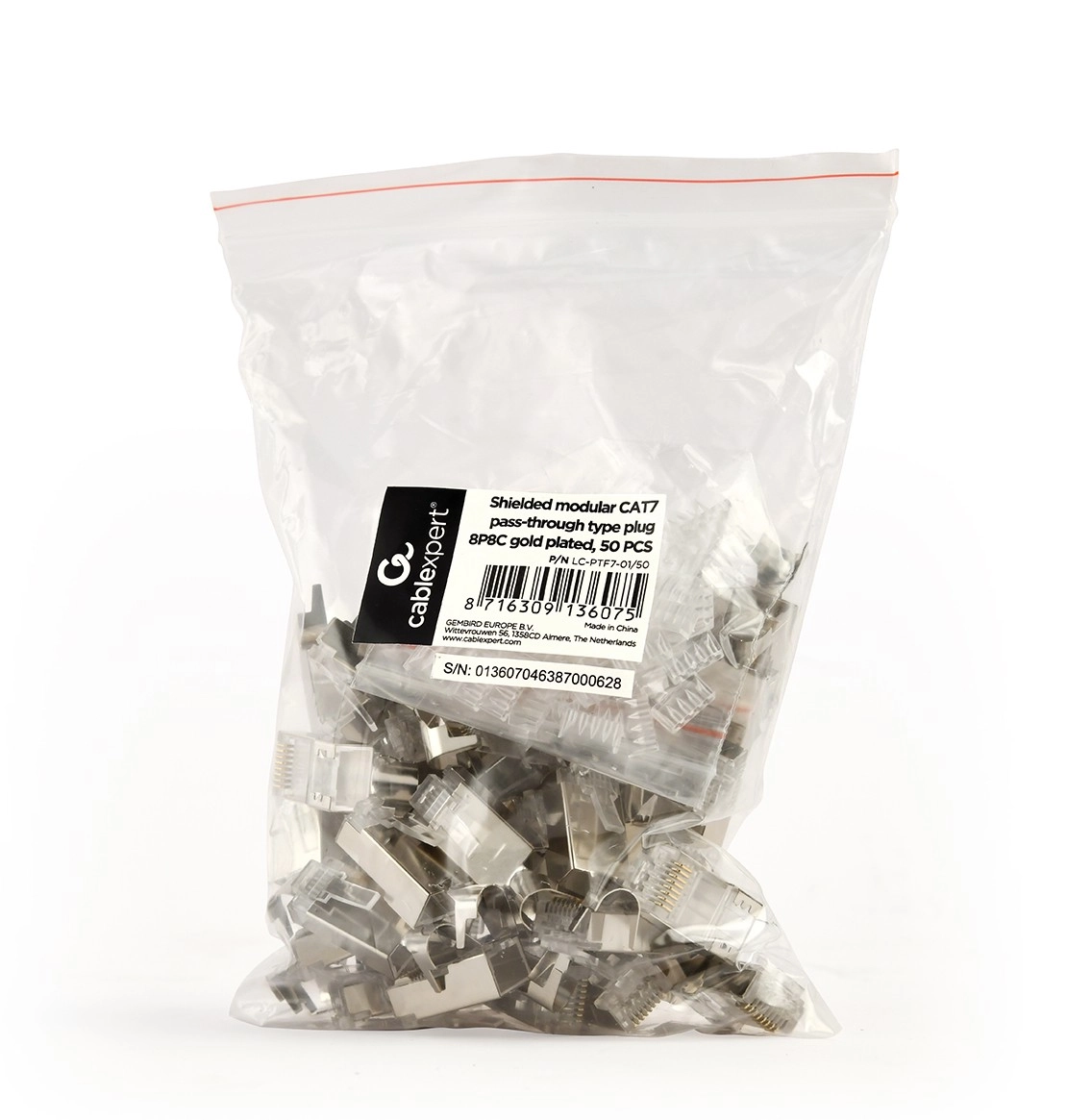 Az CAT7 kategóriához készült árnyékolt, átmenő RJ45 csatlakozók gyors és precíz hálózati kábel-terminálást tesznek lehetővé. Az átmenő (pass-through) kialakítás megkönnyíti a vezetékek rendezését és a bekötés ellenőrzését, míg a fém árnyékolás és a 15 µm aranyozott pinek javítják a vezetőképességet és a korrózióállóságot.