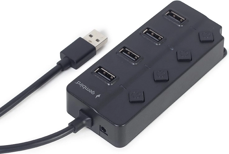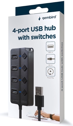 Ez a fekete, 4 portos USB 2.0 hub ideális asztali és mobil használatra. A minden porthoz külön kapcsolóval teljes kontrollt kap a csatlakoztatott eszközök felett – könnyen takarékoskodhat az energiával és óvhatja az érzékeny perifériákat. A kompakt ház bármelyik munkaasztalon elfér, és nem zavaró.