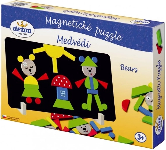 Mágneses puzzle Medvék szórakoztató és kreatív módot kínál a finommotoros készségek és a gyerekek képzelőerejének fejlesztésére. A készlet tartalmaz egy mágneses táblát és 37 fa darabkát, amelyekből különféle képeket lehet létrehozni.