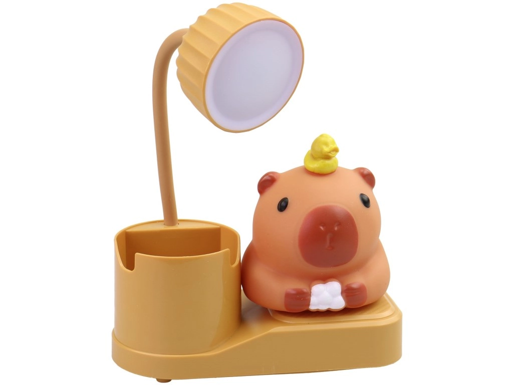 Frissítsd fel a teret a praktikus világítás és a bájos dizájn kombinációjával. A kapibarás asztali LED lámpa kellemes, nem vakító fényt nyújt olvasáshoz és nyugodt elalváshoz. Kompakt kialakítása elfér az éjjeliszekrényen, az íróasztalon vagy a polcon, a beépített tartó pedig segít rendben tartani a ceruzákat és apróságokat.