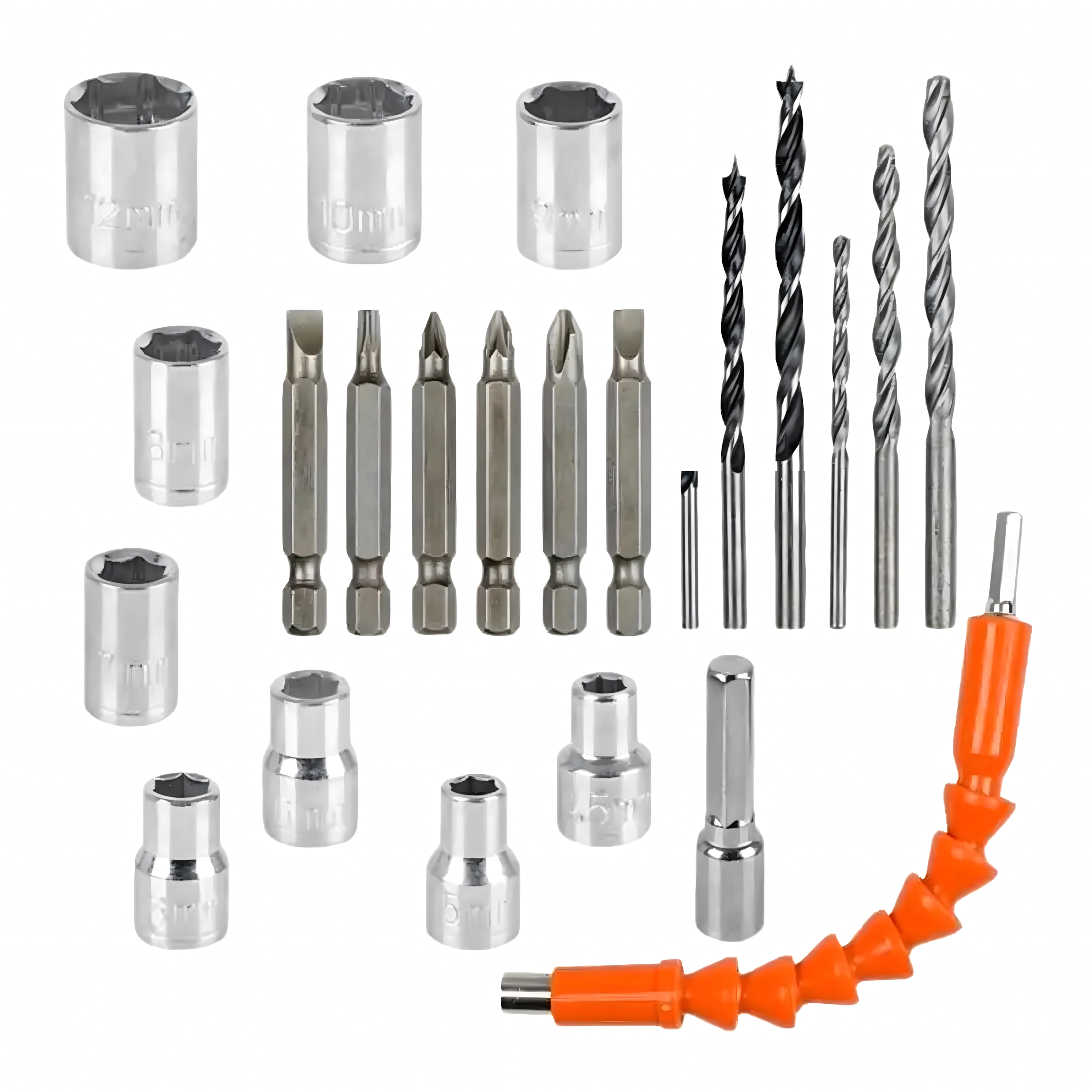 Fúrószár- és bitkészlet, fejek, adapterek, flexibilis hosszabbító