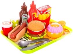 Teljes „gyorséttermi” felszerelés hamburgerrel, hot doggal, sült krumplival, itallal és desszertekkel. A gyerekek összeállíthatják saját menüjüket és megmozgathatják a fantáziájukat.