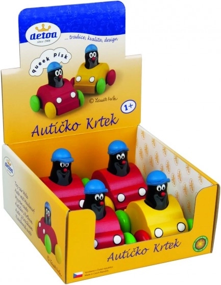 Szórakoztató játék autócska Vakond figurával, amely megnyomásakor sípoló hangot ad. Ideális 1 éves kortól, biztonságos anyagokból készült.