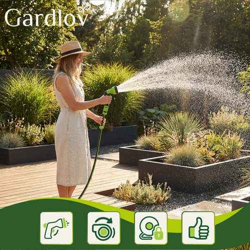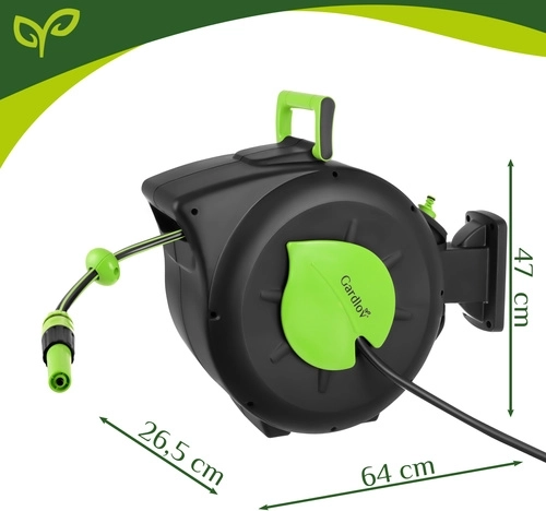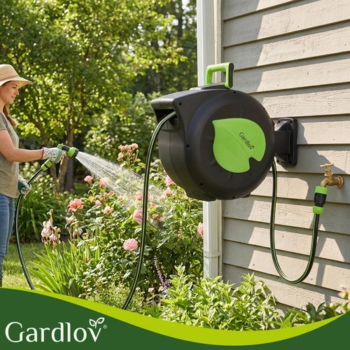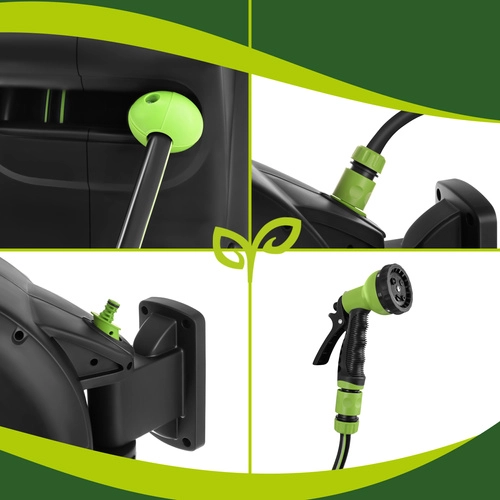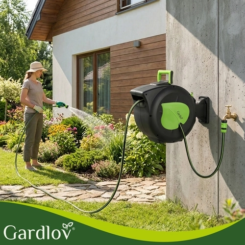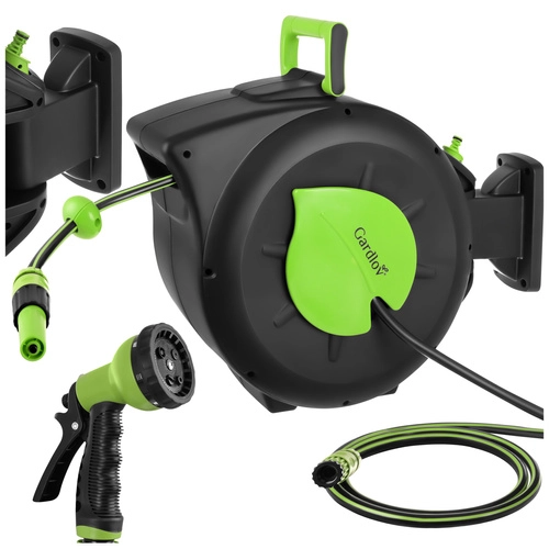 Praktikus megoldás minden kerthez: az automata feltekerő mechanizmus időt takarít meg, megelőzi a csavarodást és védi a tömlőt. A 30 m hatótávnak köszönhetően kényelmesen öntözheti a távolabbi ágyásokat átkötés nélkül, míg a hosszrögzítés a tömlőt pontosan a kívánt pozícióban tartja.