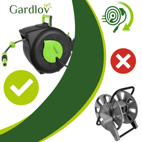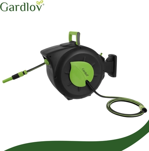 A csomag tartalma: GARDLOV automata tömlődob, fali tartó, rögzítő pecek, 7 módú pisztoly, állítható fúvóka, 30 m kerti tömlő, 2 m betápláló tömlő, univerzális csapcsatlakozó, 1/2" csatlakozó, 1/2" gyorscsatlakozó, 4× tipli, 4× csavar, többnyelvű használati útmutató és a gyártó színes csomagolása.