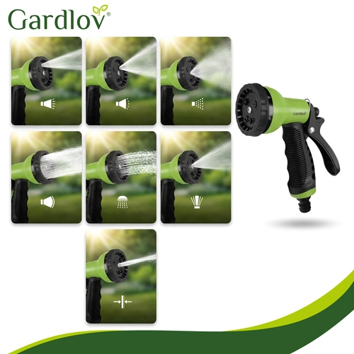 A multifunkciós pisztoly hétféle vízsugarat kínál a finom ködtől az erős sugárig – ideális az érzékeny növényekhez és a teraszok, szerszámok tisztításához is.