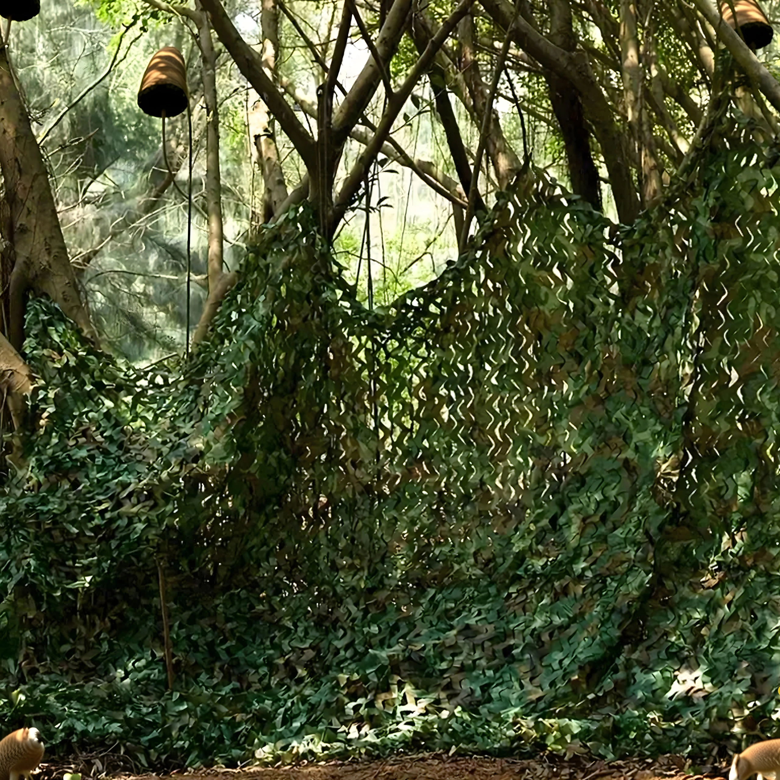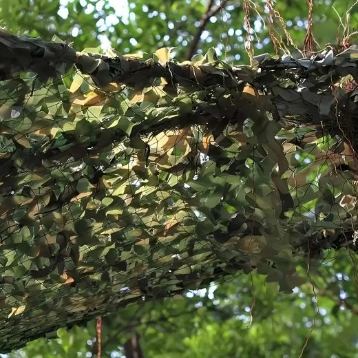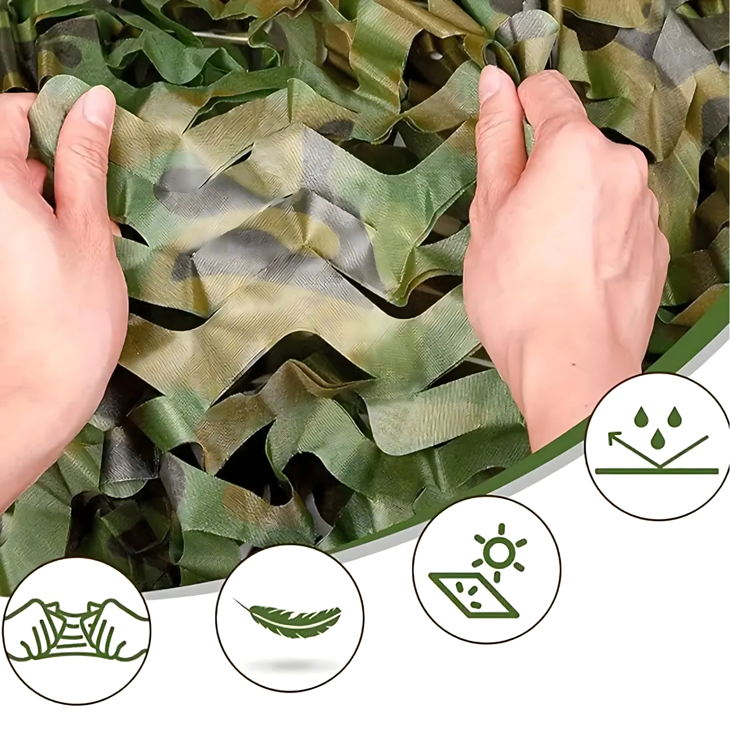 Levélszerű kivágások és woodland moro minta hatékonyan megtörik a körvonalakat, segítve a hálót, hogy beleolvadjon a környező növényzetbe. Ideális felszerelések, kerítések vagy beállók takarására.