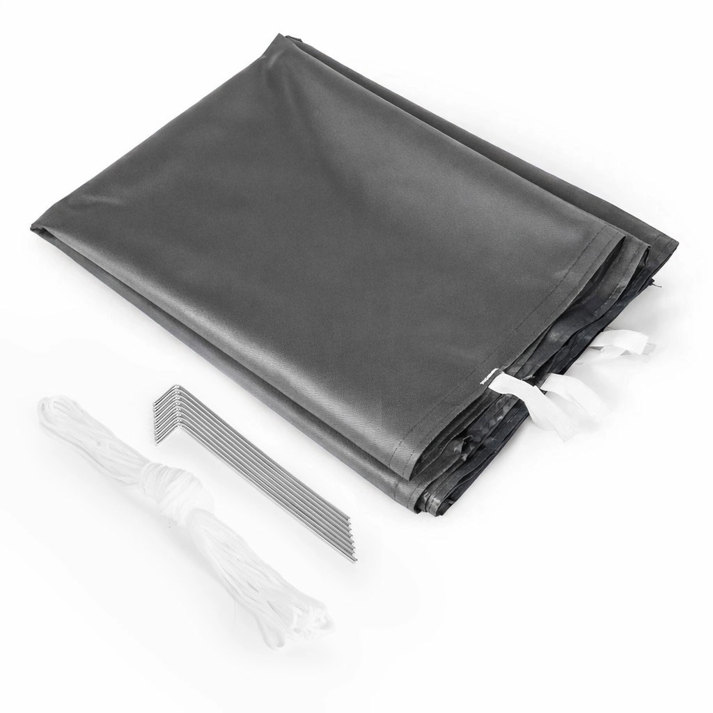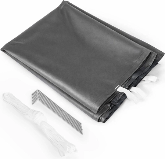 A 420D tető és a 210D oldalfalak PVC bevonattal védelmet nyújtanak a nap és az enyhe eső ellen, míg a rögzítő talplemezek és a mellékelt cövekek és kötelek növelik a stabilitást füvön és puha talajon. Az esemény végén a pavilont egyszerűen összecsukhatja és a szállítótáskába helyezheti.