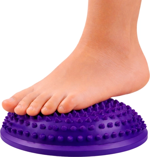 A 16 cm átmérőjű lila félgömb sokoldalú eszköz az egyensúly fejlesztéséhez, a törzs stabilizációjához és a szenzomotoros stimulációhoz. A kúpos tüskék gyengéden masszírozzák a talpat, elősegítik a vérkeringést, és aktiválják a lábboltozat izmait. Kiválóan alkalmas gyermekeknek és felnőtteknek egyaránt – otthonra, óvodákba, iskolákba és fizioterápiás rendelőkbe.