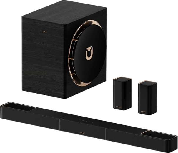 A stabil kettős 5 GHz-es vezeték nélküli átvitel minimalizálja a zavarokat, és 20 ms alatti késleltetést tart a hangprojektor, a mélynyomó és a hátsó hangsugárzók között. A HDMI eARC csatlakozás lehetővé teszi a 4K HDR átengedést bonyolult kábelezés nélkül. A továbbfejlesztett IR távirányító és az Ultimea alkalmazás 10 sávos EQ-val, 21 előbeállítással és Film / Zene / Hang / Sport / Játék / Éjszaka módokkal teljes irányítást ad a hang felett.