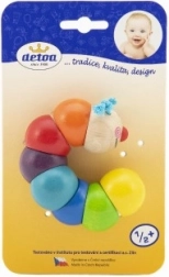 A biztonságos, egészségre ártalmatlan anyag megfelel valamennyi európai játékbiztonsági szabványnak. A játék ideális az első formák és színek felfedezéséhez, és 13 cm-es hossza miatt könnyen elfér a babakocsiban vagy az úti táskában.