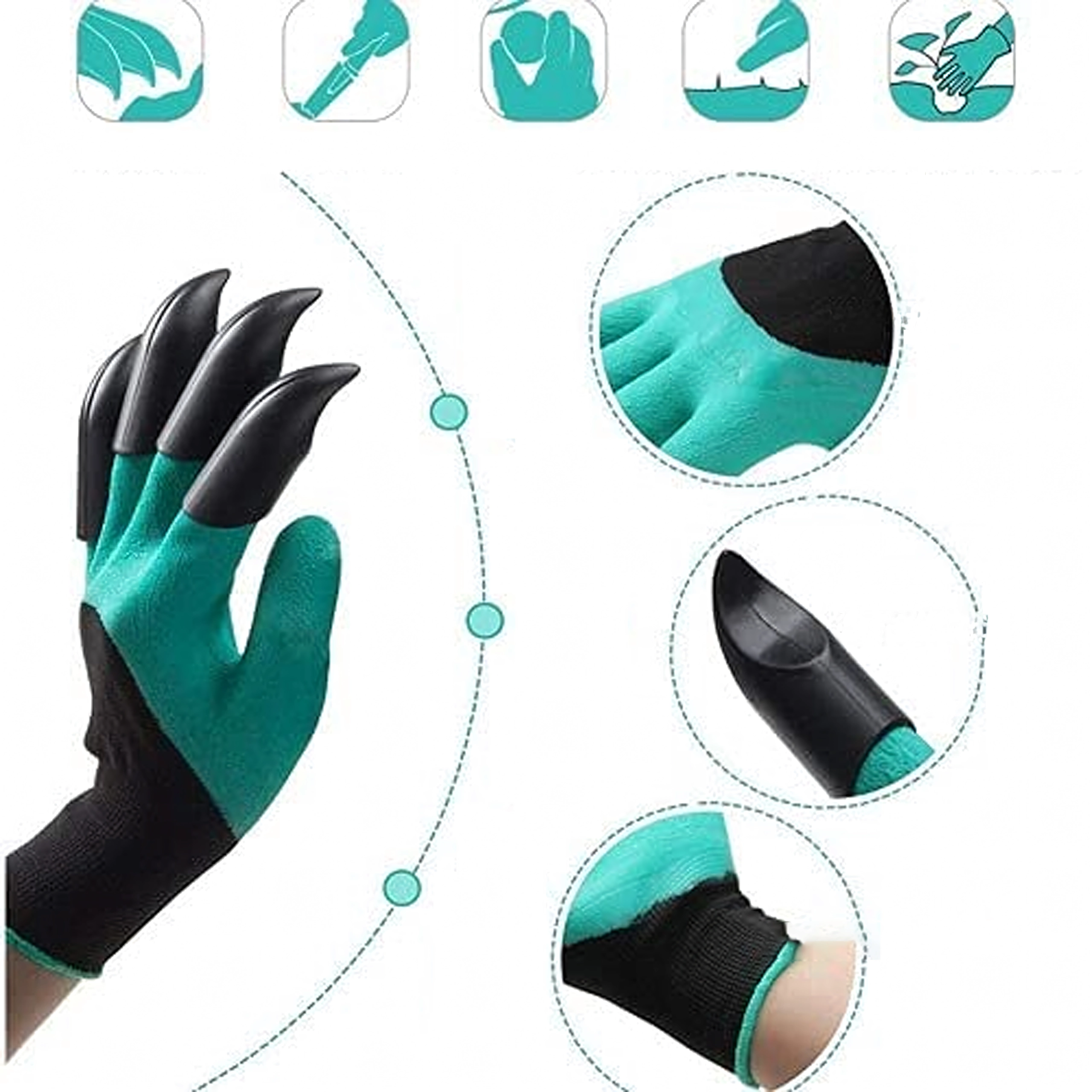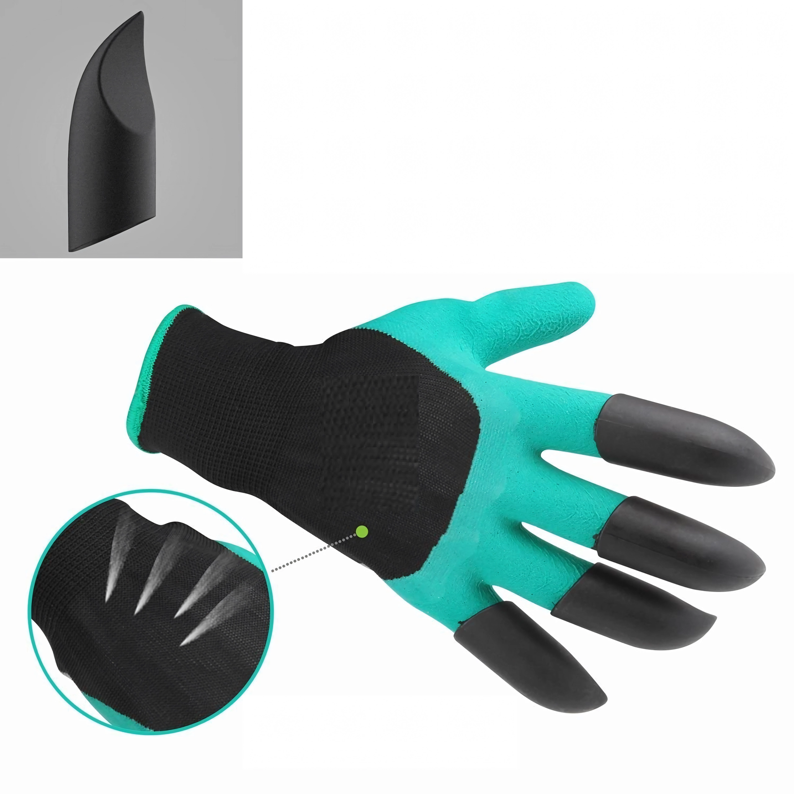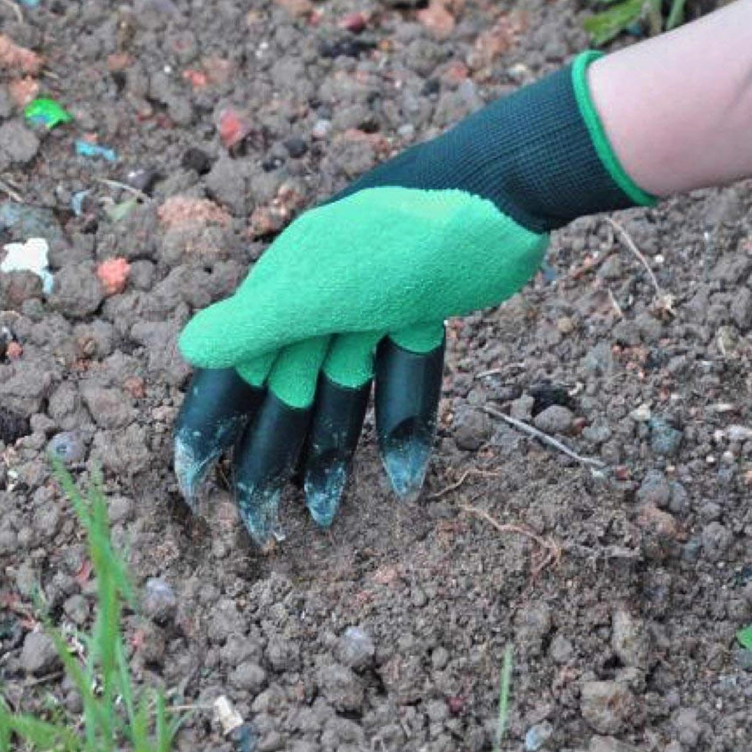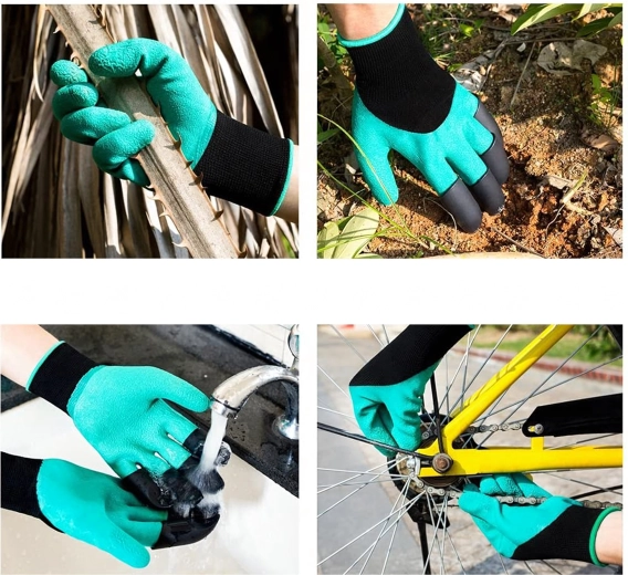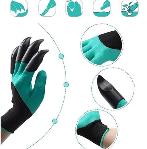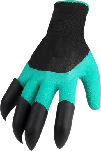 A beépített műanyag hegyek az ujjakon pillanatok alatt segítenek ültetőgödröt készíteni, lazítani a talajt és összegyűjteni az apró szennyeződéseket külön szerszám nélkül.